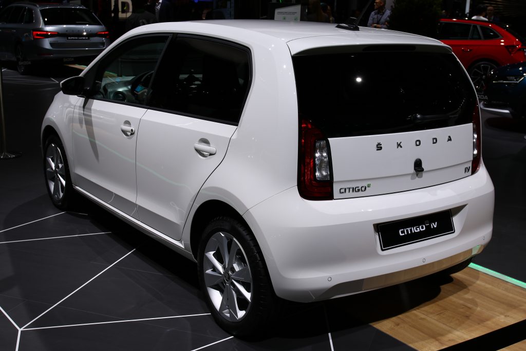 Dit is de eerste elektrische auto van Skoda, de Skoda Citigo e iV. De Citigo e iV heeft een 36,8 kWh accupakket en kan daarmee een afstand van 260 km WLTP afleggen. Voor zijn elektrische aandrijving is hetzelfde platform gebruikt als dat van de VW e-Up! en de elektrische Seat Mii. Eind dit jaar zal de productie starten. Prijzen van de elektrische Skoda zijn nog niet bekend maar reserveren kan al wel op de website van Skoda. Waarschijnlijk ligt de vanafprijs rond de 22.000 euro.