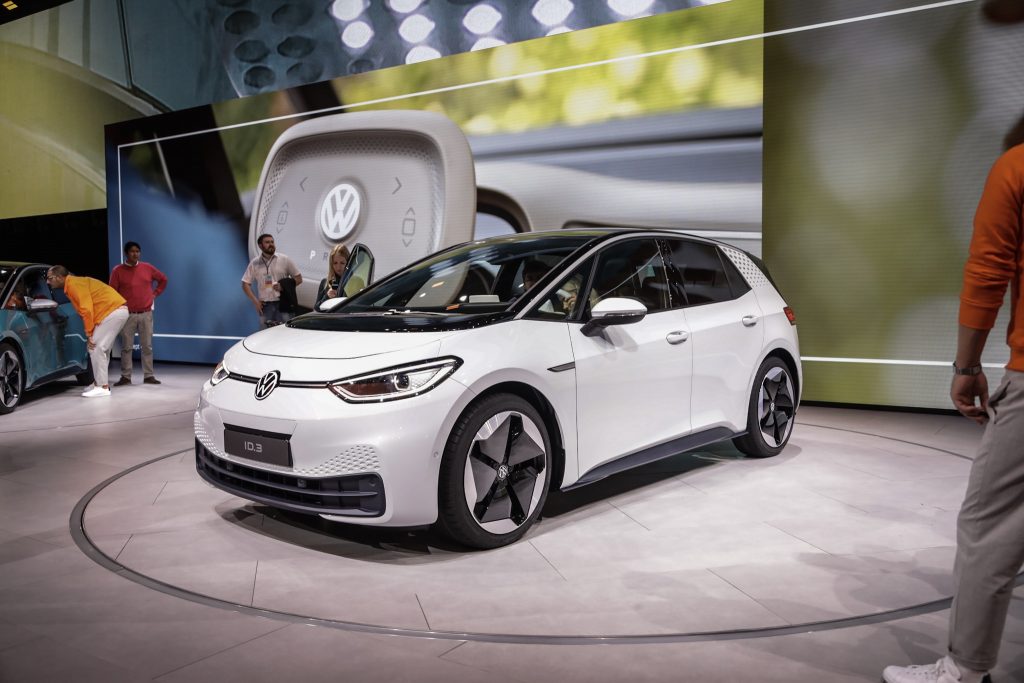 Vlak voordat de IAA haar deuren opende voor het grote publiek, had Volkswagen al een klein feestje met de onthulling van de ID.3 en het nieuwe logo. Volkswagen heeft een blauwe, witte en zilveren 1ST ID.3 meegenomen naar Frankfurt. De ID.3 1ST herkennen we aan de ruitjes in de bumper en op de C-stijl. De 1ST heeft door een batterijpakket van 77 kWh een range van 550 km WLTP en zal naar alle waarschijnlijkheid onder de 30.000 euro gaan kosten.